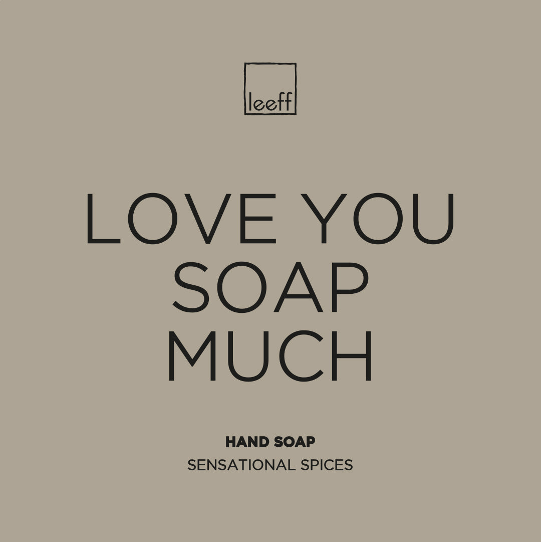 Verwen je handen met de luxe handzeep Sensational Spices van Leeff. Deze verzorgende handzeep combineert een heerlijke wellness geur met zachte, voedende ingrediënten die je huid zijdezacht maken. Met de speelse quote “Love you soap much” is deze handzeep ook een perfect cadeau voor jezelf of een ander.