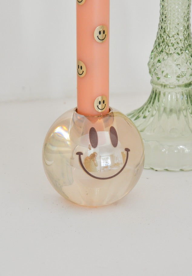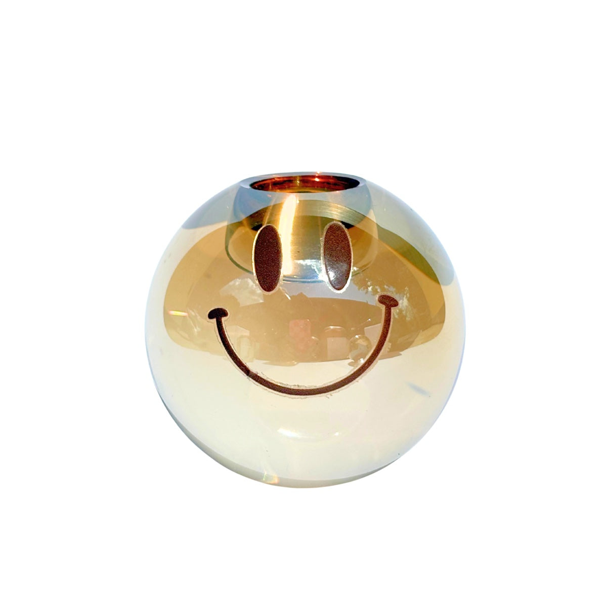 De Happy Brown is een bolvormige, zware kaarshouder in warm bruin kristal met een uitgesneden smiley. Dit unieke item geeft je interieur een gezellige, eigenzinnige uitstraling en is een echte blikvanger. Perfect te combineren met onze Smiling Rebel-kaarsen voor een warme en speelse sfeer die opvalt.
