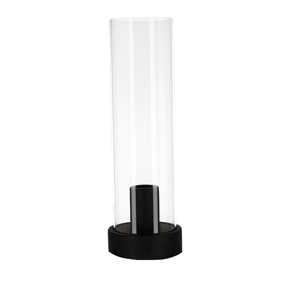 De glazen cilinder geeft deze kandelaar niet alleen een unieke uitstraling, maar maakt hem ook geschikt als windlicht voor buiten of binnen. Perfect voor een gezellige sfeer op lange avonden. Geschikt voor dinerkaarsen, waarbij het kaarsvet netjes opgevangen wordt in de verzonken rand – praktisch én mooi.