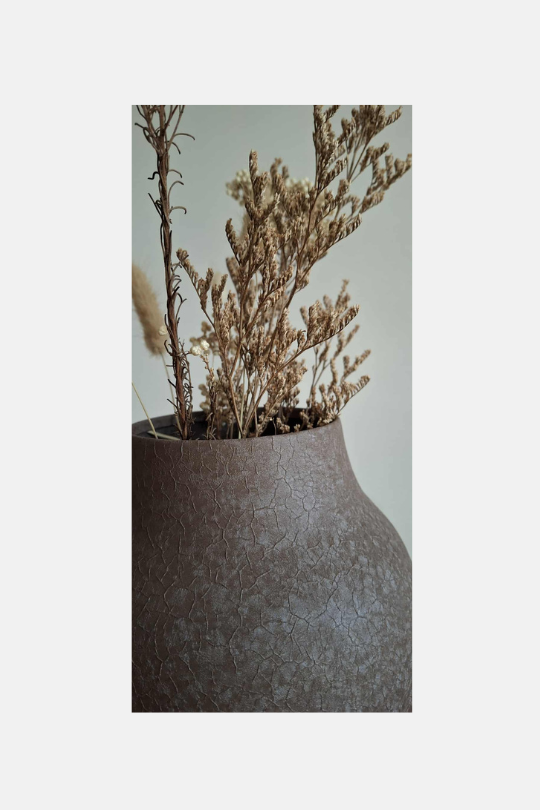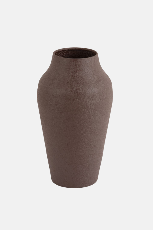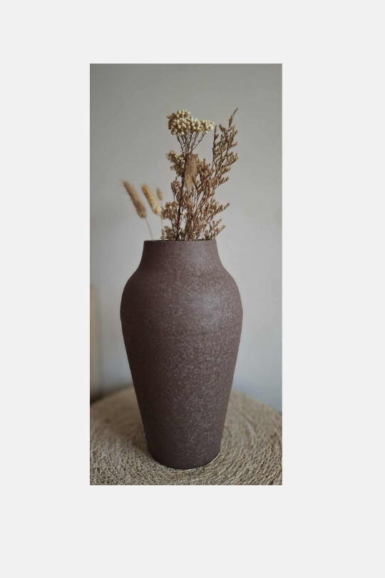 De warme bruine tint doet denken aan de gloed van houtskool – subtiel, natuurlijk en sfeervol. Met haar hoogte van 31 cm is de Vaas Ember perfect voor zowel grote boeketten als droogbloemen, maar ook zonder bloemen straalt ze pure elegantie uit.